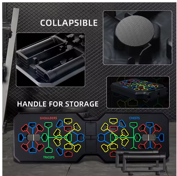The PowerFlex Pro is a multifunctional push-up board designed to target chest, arms, abs, and back. Foldable, portable, and easy to use, it brings a complete workout to your home, office, or even when traveling
